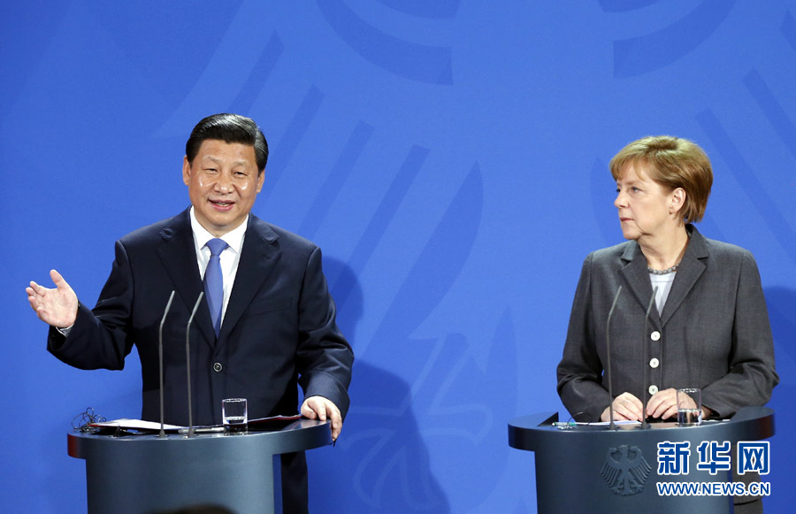 3月28日,國家主席習(xí)近平在柏林與德國總理默克爾共同會見記者。 新華社記者 鞠鵬 攝