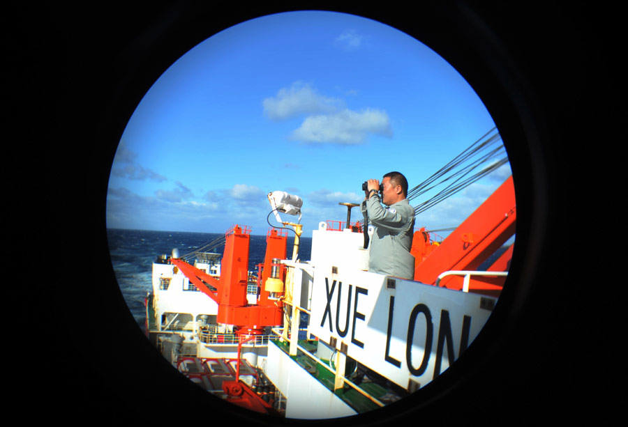 ????經(jīng)中國海上搜救中心同意,“雪龍”號科考船28日下午全速趕往澳大利亞海事安全局最新調(diào)整的搜尋區(qū),并將與“海巡01”會合,進(jìn)行中方船只現(xiàn)場指揮聯(lián)絡(luò)工作的交接。根據(jù)國際調(diào)查團(tuán)隊(duì)向澳方提出的建議,澳大利亞海事安全局28日調(diào)整了搜索部署,搜尋范圍發(fā)生較大改變。新華社記者張建松攝