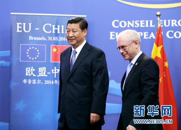 ????新華網(wǎng)布魯塞爾3月31日電(記者 魏建華 錢彤)國家主席習(xí)近平31日在布魯塞爾同歐洲理事會(huì)主席范龍佩舉行會(huì)談。雙方就新形勢(shì)下深化中歐全面戰(zhàn)略伙伴關(guān)系廣泛深入交換意見,達(dá)成重要共識(shí)。習(xí)近平強(qiáng)調(diào),要從戰(zhàn)略高度看待中歐關(guān)系,將中歐兩大力量、兩大市場(chǎng)、兩大文明結(jié)合起來,共同打造中歐和平、增長(zhǎng)、改革、文明四大伙伴關(guān)系,為中歐合作注入新動(dòng)力,為世界發(fā)展繁榮作出更大貢獻(xiàn)。