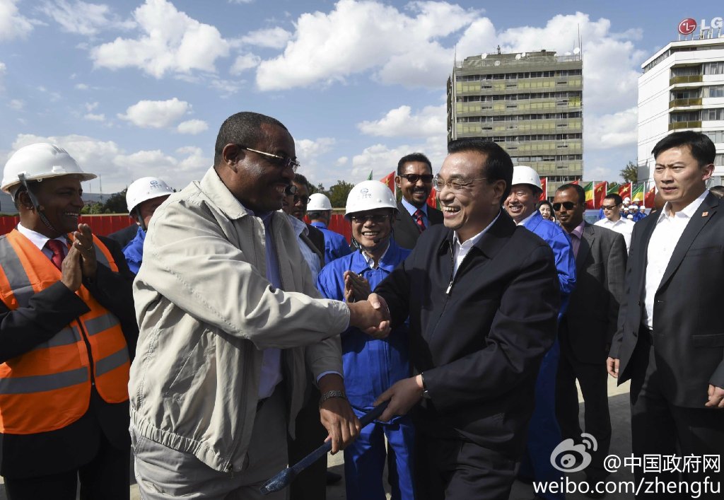 ????新華網(wǎng)北京5月6日電 據(jù)中國(guó)政府網(wǎng)微博報(bào)道,當(dāng)?shù)貢r(shí)間5日下午,李克強(qiáng)在埃塞俄比亞總理海爾馬里亞姆陪同下,參觀中方承建的亞的斯亞貝巴輕軌項(xiàng)目。他對(duì)工人說,埃塞俄比亞是東非乃至非洲的高地,你們一定要確保質(zhì)量,打出品牌,建成中國(guó)裝備、鐵路走出去的高地,讓非洲人民受益。