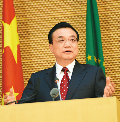 本報(bào)亞的斯亞貝巴5月5日電 (記者吳樂珺、倪濤)國(guó)務(wù)院總理李克強(qiáng)當(dāng)?shù)貢r(shí)間5日在位于亞的斯亞貝巴的非洲聯(lián)盟總部發(fā)表題為《開創(chuàng)中非合作更加美好的未來》的演講。