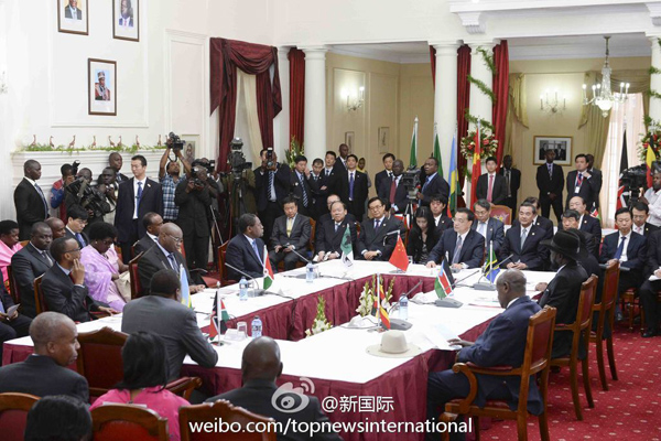 李克強(qiáng)與非洲四國(guó)總統(tǒng)兩國(guó)外長(zhǎng)共同見證蒙內(nèi)鐵路合作協(xié)議簽署