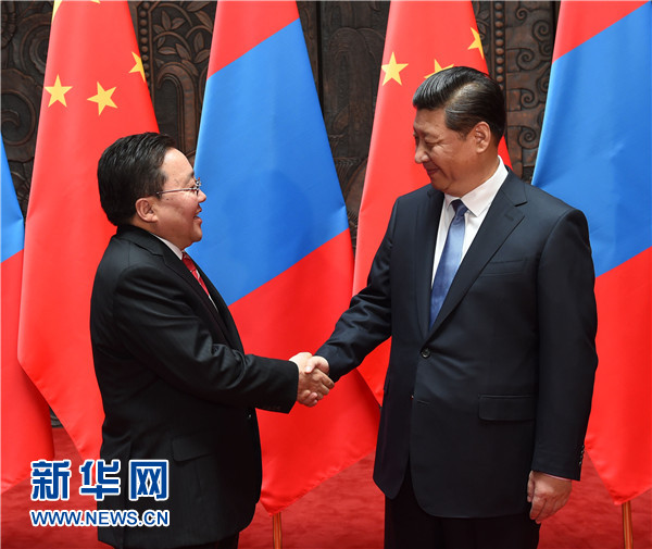 習近平強調,我十分關心和高度重視中蒙關系。兩國領導人要保持密切交往和戰(zhàn)略溝通,實實在在推進兩國合作。兩國立法機構、政黨、軍隊也要加強交往。中蒙經濟互補性強。中方開展對蒙合作堅持互利雙贏原則,不搞我贏你輸、我多你少。中方愿本著礦產資源開發(fā)、基礎設施建設、金融合作“三位一體、統(tǒng)籌推進”原則,以互聯互通建設為優(yōu)先方向,以建設絲綢之路經濟帶為契機,拓展兩國合作,鼓勵有實力的中國企業(yè)赴蒙投資興業(yè)。中方支持蒙方積極參與國際和地區(qū)事務,愿同蒙方加強在聯合國、上海合作組織等框架內合作。