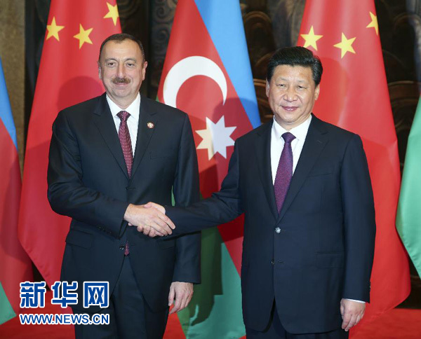 ????習(xí)近平表示,中阿兩國(guó)友好合作關(guān)系在平等互利、相互尊重的基礎(chǔ)上不斷發(fā)展。兩國(guó)政治關(guān)系牢固,互信水平高,務(wù)實(shí)成果豐碩。中方贊賞阿方在涉及中國(guó)核心利益的問(wèn)題上始終給予的堅(jiān)定支持,支持阿塞拜疆人民根據(jù)本國(guó)國(guó)情選擇的發(fā)展道路,支持阿方維護(hù)國(guó)家主權(quán)、獨(dú)立,促進(jìn)經(jīng)濟(jì)發(fā)展的努力。中方愿同阿方一道,密切兩國(guó)政府、立法機(jī)構(gòu)、政黨、各部門交往,增進(jìn)政治互信。中方鼓勵(lì)本國(guó)企業(yè)同阿方在工程承包、基礎(chǔ)設(shè)施建設(shè)、交通、電信、新能源等領(lǐng)域開展合作,鼓勵(lì)兩國(guó)人文交流,愿同阿方加強(qiáng)在國(guó)際和地區(qū)事務(wù)中的溝通和協(xié)調(diào)。