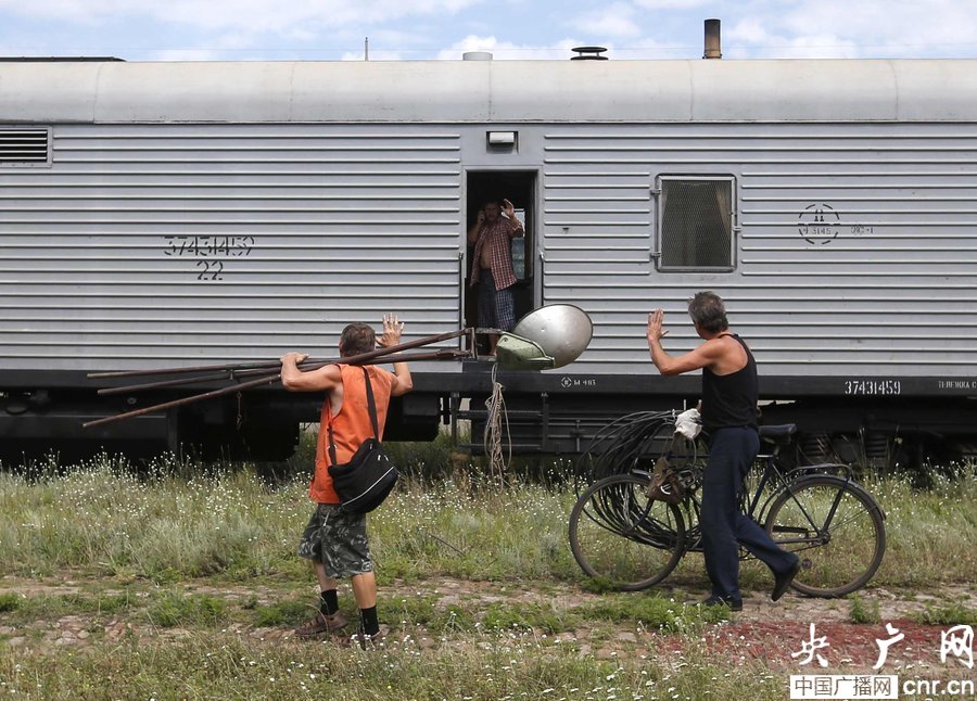 當(dāng)?shù)貢r(shí)間2014年7月20日,烏克蘭頓涅茨克Torez,馬航墜機(jī)遇難乘客遺體被裝上列車?yán)洳剀噹麑⒈贿\(yùn)走。載有部分遺體的火車從距空難現(xiàn)場(chǎng)不遠(yuǎn)的烏克蘭托列茲市出發(fā),前往頓涅茨克市?;疖囯x站前,身處空難現(xiàn)場(chǎng)的歐洲安全與合作組織(歐安組織)代表檢查了運(yùn)載遺體的5節(jié)冷藏車廂。