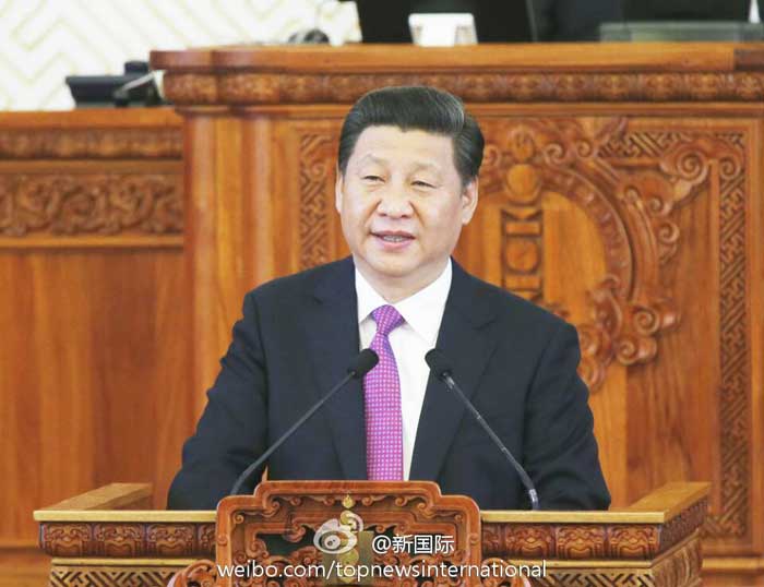 ???? 新華網(wǎng)北京8月22日電 據(jù)新華社“新國際”微博報(bào)道,習(xí)近平主席22日在蒙古國國家大呼拉爾發(fā)表演講時(shí)說,中國愿意為周邊國家提供共同發(fā)展的機(jī)遇和空間,歡迎大家搭乘中國發(fā)展的列車,搭快車也好,搭便車也好,我們都?xì)g迎。(新華社記者鞠鵬攝)?