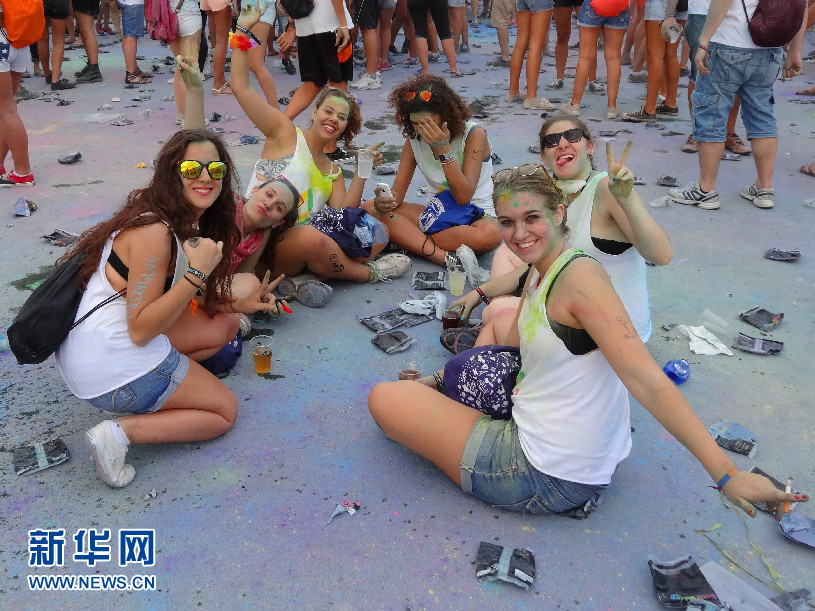 “2014巴塞羅那霍利節(jié)”現(xiàn)場的年輕人 (新華社記者周喆拍攝)?