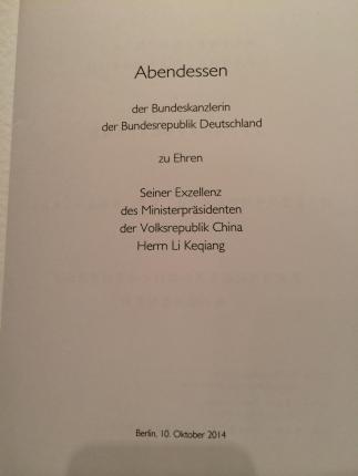宴會(huì)是領(lǐng)導(dǎo)人出訪日程中不可或缺的安排,但是和誰(shuí)吃、吃什么、在哪里吃可是有講究的。默克爾的這個(gè)安排既是因?yàn)樗涂偫砹己玫乃饺岁P(guān)系,也是為了答謝今年7月她訪問(wèn)中國(guó)時(shí)受到的熱情接待。