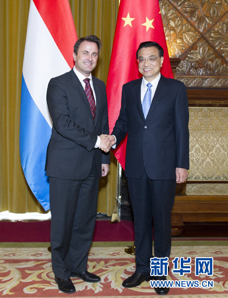 ??? 當(dāng)?shù)貢r(shí)間10月11日上午,中國國務(wù)院總理李克強(qiáng)在出席中歐論壇漢堡峰會(huì)前會(huì)見盧森堡首相貝特爾。 新華社記者王曄攝