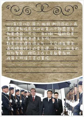 2013年3月15日,李克強(qiáng)當(dāng)選國(guó)務(wù)院總理。默克爾是第一位給他打來(lái)祝賀電話(huà)的外國(guó)領(lǐng)導(dǎo)人。真是感動(dòng),太有心了!