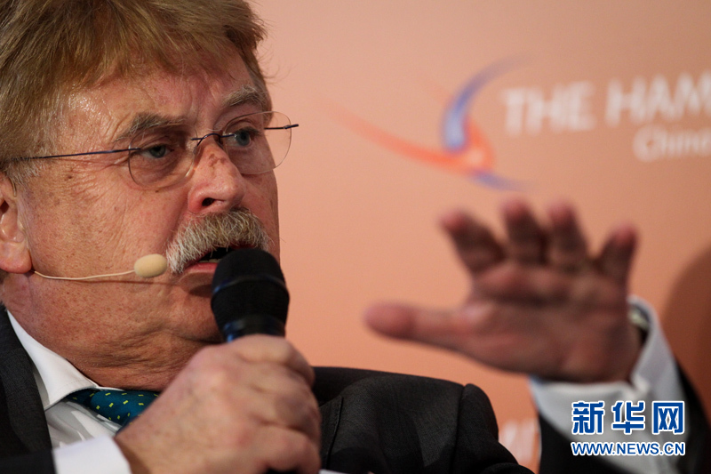 ??? 10月11日,在德國漢堡舉行的中歐論壇漢堡峰會上,歐洲議會議員、歐洲議會外交事務委員會主席?,?布洛克發(fā)言。中歐論壇漢堡峰會第六屆會議11日在德國漢堡閉幕。本屆峰會以“中國與歐洲相遇”為主題。來自中歐政治、經濟和學術界的500多位代表聚集在一起,探討中歐經貿合作未來趨勢、中國經濟的綠色發(fā)展等重要議題。新華社記者張帆攝
