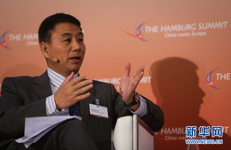??? 10月11日,在德國(guó)漢堡舉行的中歐論壇漢堡峰會(huì)上,世界貿(mào)易組織副總干事易小準(zhǔn)發(fā)言。中歐論壇漢堡峰會(huì)第六屆會(huì)議11日在德國(guó)漢堡閉幕。本屆峰會(huì)以“中國(guó)與歐洲相遇”為主題。來自中歐政治、經(jīng)濟(jì)和學(xué)術(shù)界的500多位代表聚集在一起,探討中歐經(jīng)貿(mào)合作未來趨勢(shì)、中國(guó)經(jīng)濟(jì)的綠色發(fā)展等重要議題。新華社記者張帆攝