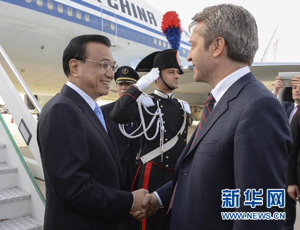 新華網(wǎng)快訊:國(guó)務(wù)院總理李克強(qiáng)當(dāng)?shù)貢r(shí)間14日下午抵達(dá)羅馬,開始對(duì)意大利進(jìn)行正式訪問(wèn)。