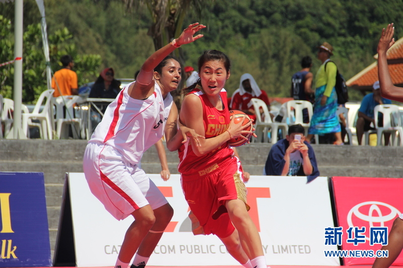 ??? 11月16日,中國沙灘籃球運動員房玲玲(右)在比賽中。中國體育代表團16日在泰國普吉舉行的第四屆亞洲沙灘運動會上勇奪2枚金牌和2枚銅牌。當天比賽全部結束時,中國隊以3金2銀5銅的成績暫列獎牌榜第五。新華社發(fā)(塔納攝)