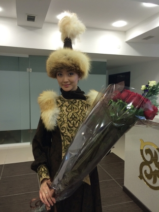身著民族服裝的哈薩克族姑娘,給克強(qiáng)總理獻(xiàn)上了一束玫瑰花。禮賓官向記者透露,按照當(dāng)?shù)亓?xí)俗,迎接客人時(shí)一般都送顏色鮮艷的花,而且是送單數(shù)。哈薩克語(yǔ)中玫瑰代表著“熱情和祝?!保裉飓I(xiàn)給克強(qiáng)總理的就是15支玫瑰花。