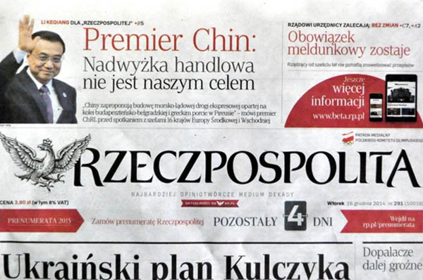 波蘭《共和國(guó)報(bào)》刊登對(duì)李克強(qiáng)聯(lián)合書面采訪稿件