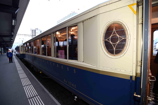 前往達沃斯通常乘坐的紅色窄軌小火車很有特色。克強總理此次乘坐的專列是瑞方鐵路公司專門用于租借的,充當(dāng)過不少國家領(lǐng)導(dǎo)人的專列,顏色不同于普通小火車的紅色,而是藍(lán)白配色的。