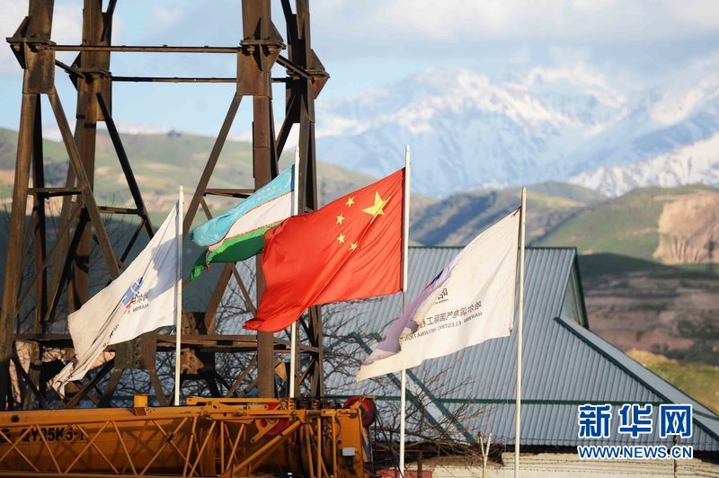 烏茲別克斯坦安格連(市)電廠煙囪施工現(xiàn)場(chǎng)。新華網(wǎng)發(fā) 記者沙達(dá)提 攝