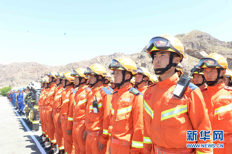 6月3日,代表中國參加上合組織國際救援聯(lián)合演練的新疆消防總隊隊員在哈薩克斯坦阿拉木圖州塔姆卡壘塔斯景區(qū)的哈內(nèi)務部緊急情況委員會教練基地“巖石城-阿斯塔納”參加演練。新華社記者沙達提攝