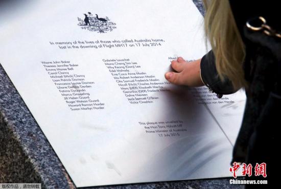 圖為馬航MH17遇難者紀念碑上刻有澳大利亞遇難者的名字。