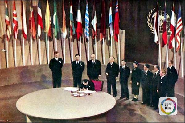 ????圖為1945年6月26日中國(guó)政府代表顧維鈞第一個(gè)在聯(lián)合國(guó)憲章上簽字。