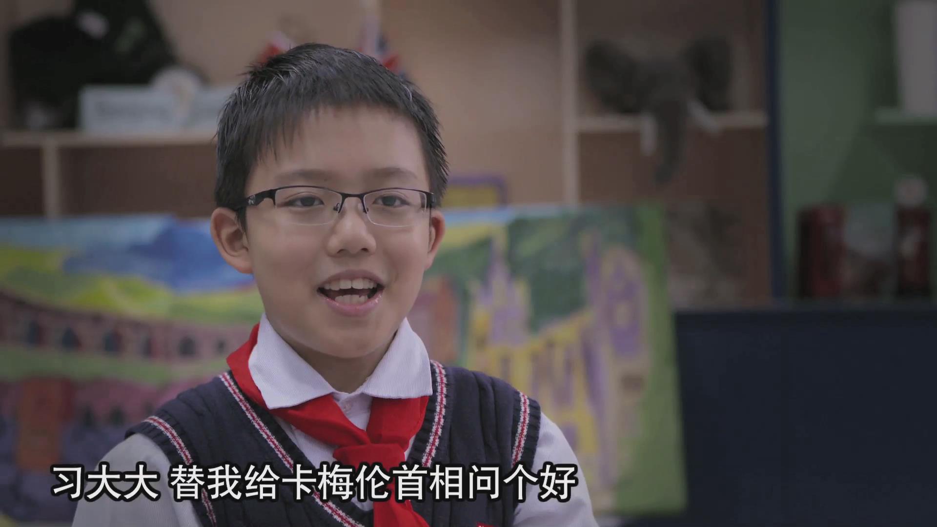 短片結尾處還有“彩蛋”,成都龍江路小學分校學生鮮博文最后說:“習大大,替我給卡梅倫首相問個好,我見過他的!”