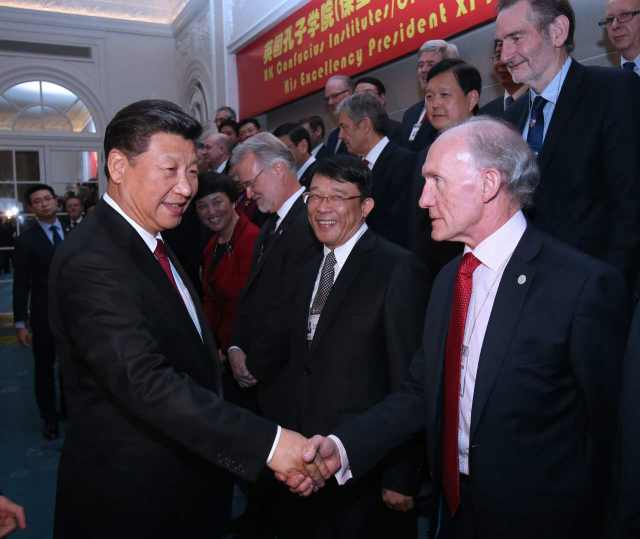習(xí)近平在致辭中指出,多年來(lái),孔子學(xué)院和孔子課堂的教職工為介紹中華文化、溝通人民心靈、搭建友誼橋梁傾注了大量熱情和心血,取得了可喜成績(jī)??吹接?guó)有這么多老師和學(xué)生在教授和學(xué)習(xí)漢語(yǔ),尤其看到有這么多英國(guó)學(xué)生對(duì)中國(guó)語(yǔ)言文化感興趣,我感到很高興。
