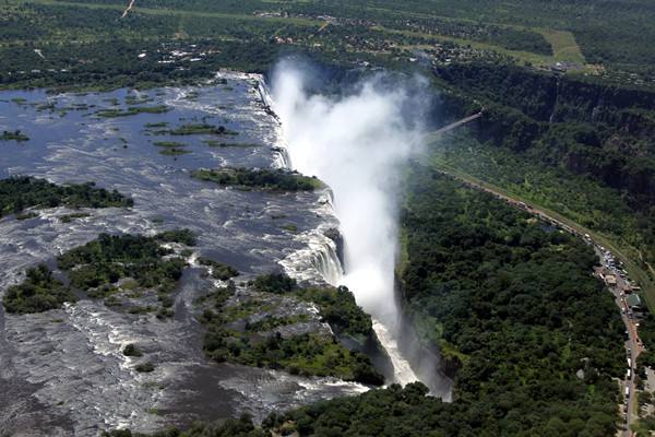 2014年2月17日,從直升機上俯瞰旺水期的維多利亞大瀑布。(新華社記者王悅攝)