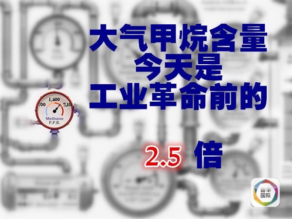美國國家海洋和大氣管理局統(tǒng)計,2014年大氣中甲烷的含量是工業(yè)革命前的2.5倍強。