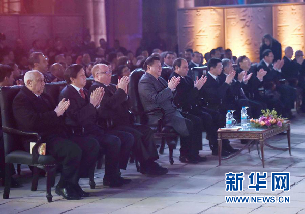 1月21日,國家主席習(xí)近平和埃及總統(tǒng)塞西在古老的盧克索神廟廣場(chǎng)共同出席中埃建交60周年慶?;顒?dòng)暨2016中埃文化年開幕式。新華社記者張鐸攝