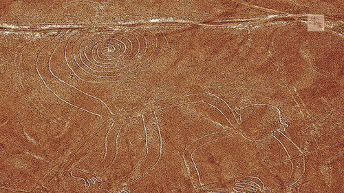 ????站在地面上的話,你幾乎看不到納斯卡線,它們由淺色泥土畫成,兩邊由深色石頭畫的線來提亮。這個(gè)地區(qū)有數(shù)量眾多的納斯卡線——長達(dá)幾千米的碎片狀的三角形和矩形,非寫實(shí)的動物和鳥類圖案:一只猴子,一只禿鷹,一只完全對稱的蜘蛛,一只蜂鳥。