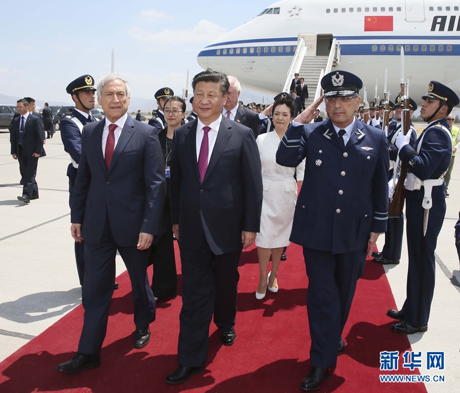 11月22日,國(guó)家主席習(xí)近平抵達(dá)圣地亞哥,對(duì)智利共和國(guó)進(jìn)行國(guó)事訪問。智利外長(zhǎng)穆尼奧斯等在機(jī)場(chǎng)迎接習(xí)近平和夫人彭麗媛。 新華社記者蘭紅光 攝