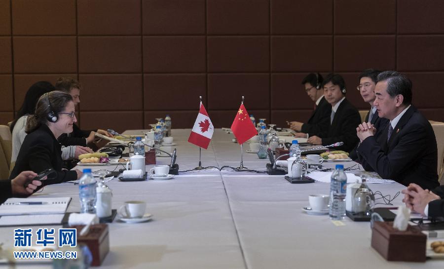 11月11日,外交部長王毅在越南峴港應(yīng)約會見加拿大外長弗里蘭。新華社記者 費(fèi)茂華 攝