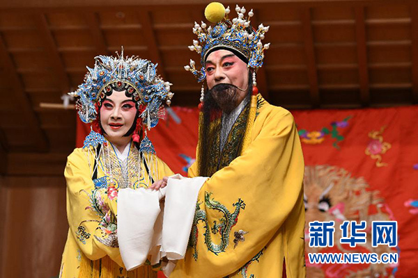 12月20日,在日本東京國(guó)立能樂(lè)堂,中國(guó)著名昆曲表演藝術(shù)家蔡正仁(右)和張靜嫻表演昆曲《長(zhǎng)生殿》。新華社記者 姜俏梅 攝