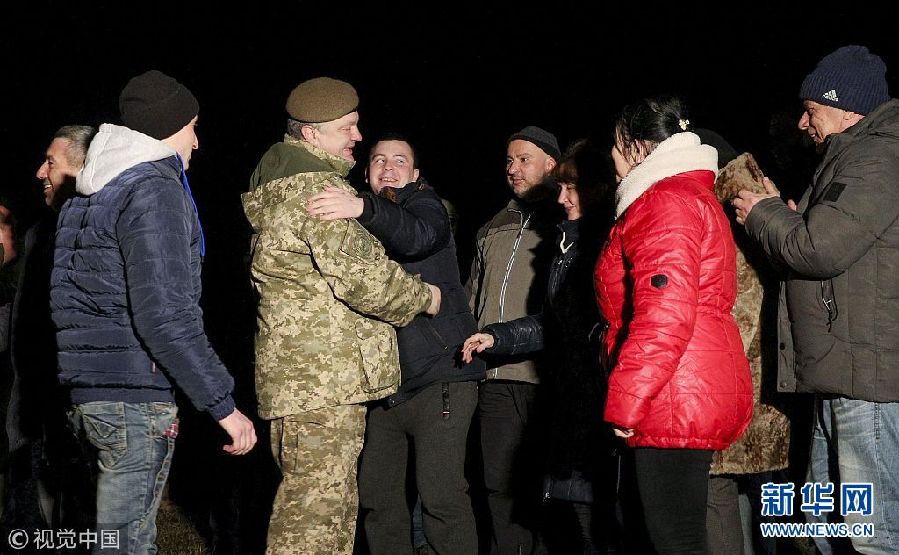 12月27日,烏克蘭哈爾科夫,獲釋戰(zhàn)俘抵達哈爾科夫。烏克蘭政府軍與東部民間武裝當(dāng)日舉行了大規(guī)模的交換戰(zhàn)俘行動。(圖片來源:視覺中國)