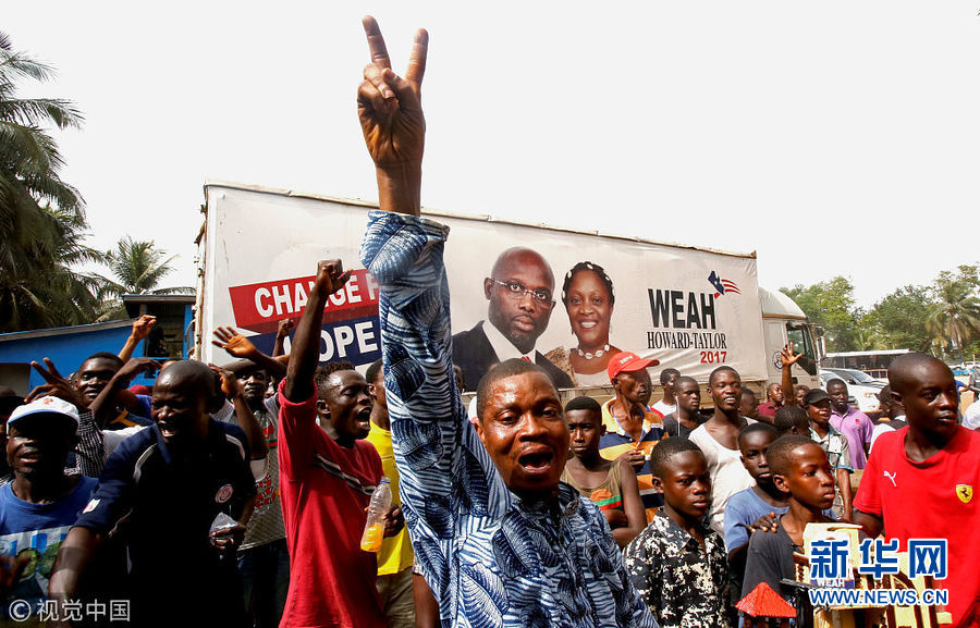 前世界足球先生維阿當選利比里亞總統(tǒng) 支持者上街慶祝
