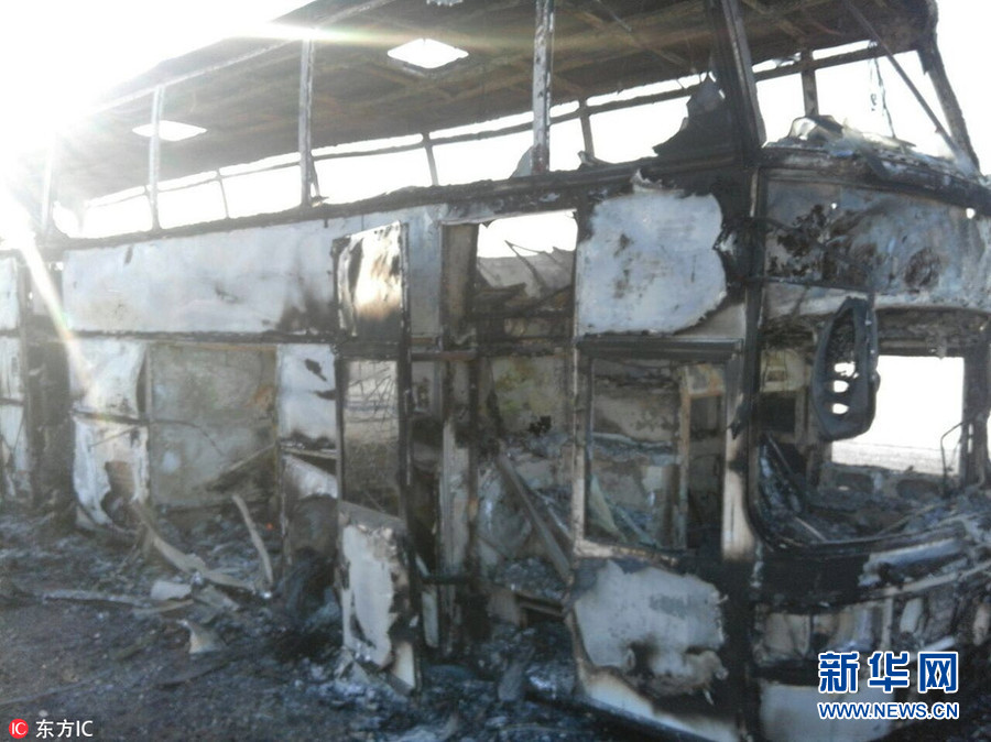 1月18日,哈薩克斯坦阿克托別市(Aktobe),一輛巴士在行駛途中著火,造成至少52人喪生。報道稱只有5名人從著火的車中逃生,遇難者均為烏茲別克斯坦公民。(圖片來源:東方IC)