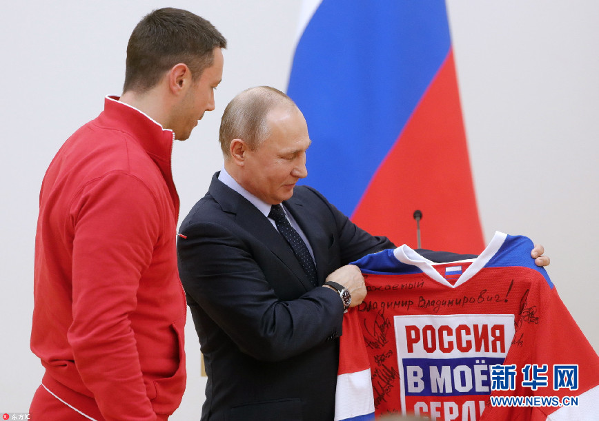 普京會見俄羅斯征戰(zhàn)平昌冬奧會運(yùn)動員 獲贈簽名球衣