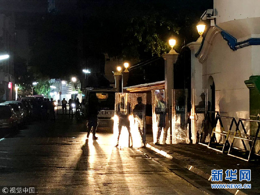 當(dāng)?shù)貢r(shí)間2月5日,馬爾代夫馬累,安全部隊(duì)駐守在最高法院外。馬爾代夫法律事務(wù)部長(zhǎng)沙庫(kù)爾5日晚通過國(guó)家電視臺(tái)宣布,馬爾代夫總統(tǒng)亞明已正式發(fā)布命令,從當(dāng)天開始全國(guó)實(shí)行為期15天的緊急狀態(tài)。(圖片來(lái)源:視覺中國(guó))