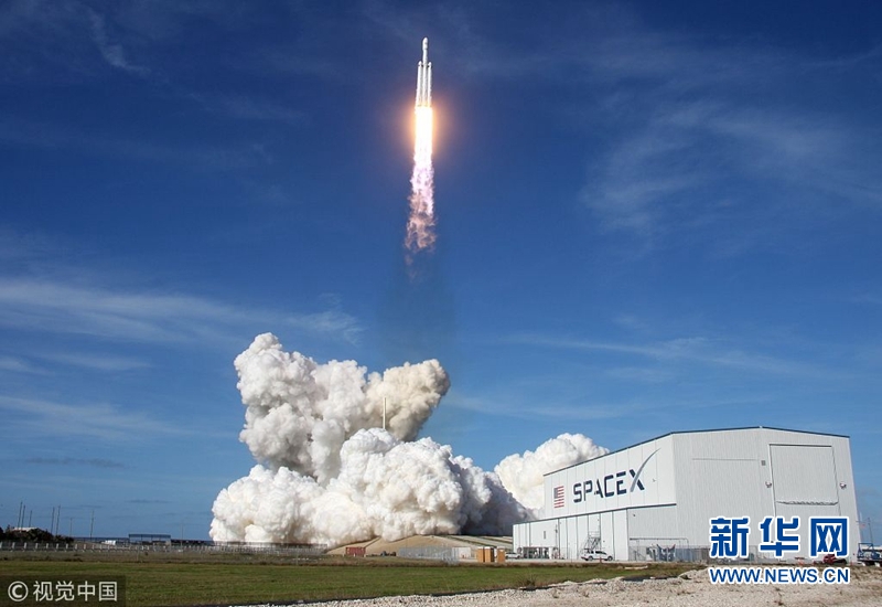 當(dāng)?shù)貢r(shí)間2018年2月6日,美國(guó)佛州卡納維拉爾角,美國(guó)重型運(yùn)載火箭“獵鷹重型”6日攜帶一輛特斯拉跑車(chē)發(fā)射升空。(圖片來(lái)源:視覺(jué)中國(guó))