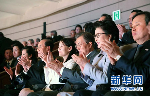 朝鮮藝術(shù)團8日晚在韓國江原道江陵藝術(shù)中心舉行了首場演出。