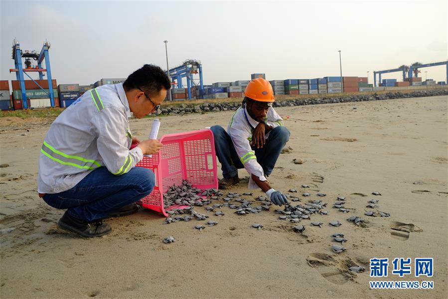 每年10月至次年3月是加納海域海龜?shù)漠a(chǎn)卵與孵化期,成年海龜會陸續(xù)來到海灘產(chǎn)卵,繁衍下一代。為了保障項(xiàng)目工程區(qū)域海龜正常產(chǎn)卵孵化,承建單位中國港灣工程有限責(zé)任公司(中國港灣)2017年11月建立了海龜孵化基地,將野生海龜在沿岸產(chǎn)的卵收集起來進(jìn)行集中孵化,在小海龜孵化后放回大海。