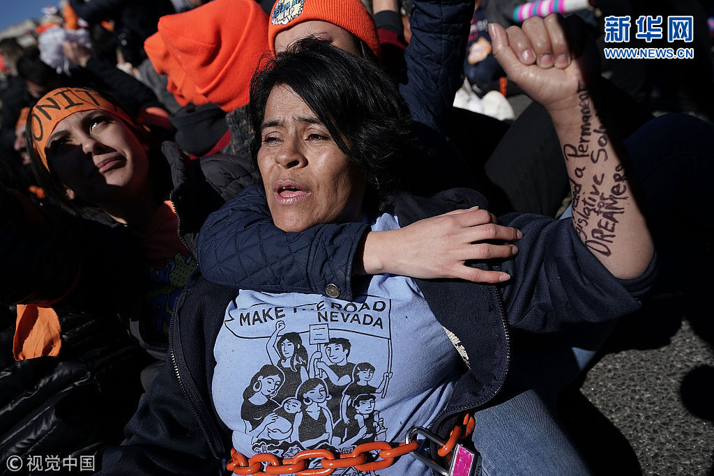 當(dāng)?shù)貢r(shí)間2018年3月5日,美國華盛頓,移民活動(dòng)家在國會(huì)山舉行集會(huì),抗議特朗普終結(jié)“夢想法案”計(jì)劃。(圖片來源:視覺中國)