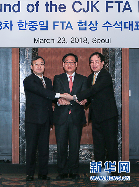 3月23日,中日韓自貿(mào)區(qū)第十三輪談判首席談判代表會(huì)議在韓國(guó)首爾舉行。新華社記者 王婧嬙 攝