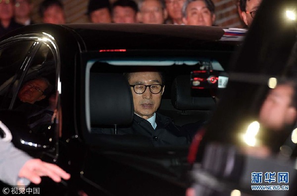 資料圖:韓國首爾中央地方法院22日晚對前總統(tǒng)李明博簽發(fā)逮捕令。新華網(wǎng)發(fā)