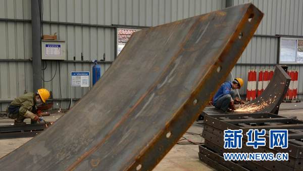 3月27日,在老撾南塔省,中鐵五局工人在車(chē)間內(nèi)加工鐵路施工材料。新華網(wǎng)發(fā) 劉艾倫攝
