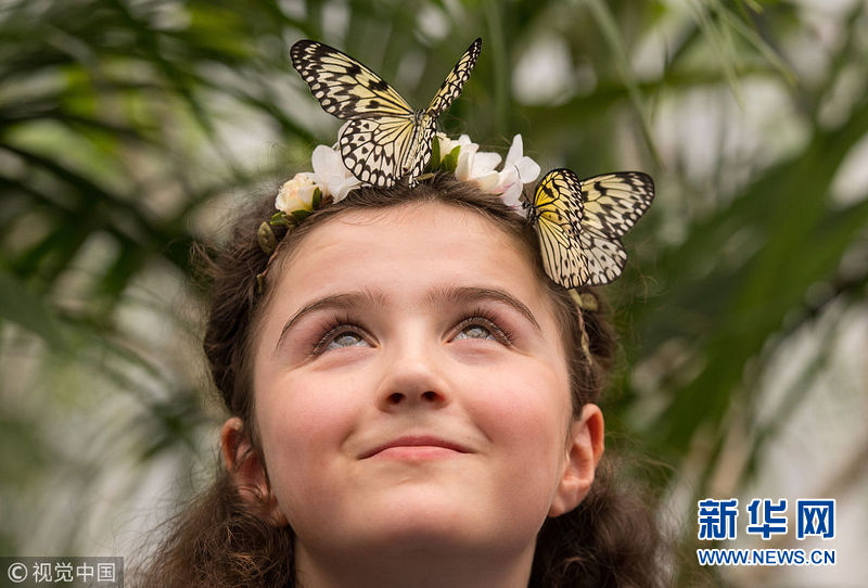 3月28日,英國(guó)倫敦自然歷史博物館舉辦奇異蝴蝶展,各式美麗新奇的蝴蝶翩翩飛舞,吸引了前來(lái)參觀的兒童與之親密接觸。(圖片來(lái)源:視覺(jué)中國(guó))