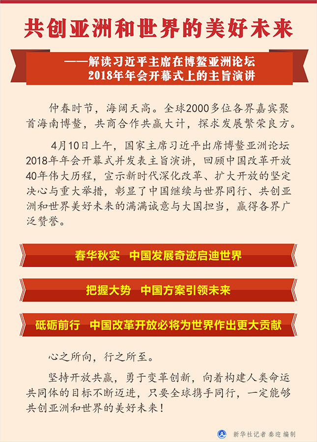 新華社海南博鰲4月10日電? 題:共創(chuàng)亞洲和世界的美好未來——解讀習近平主席在博鰲亞洲論壇2018年年會開幕式上的主旨演講
