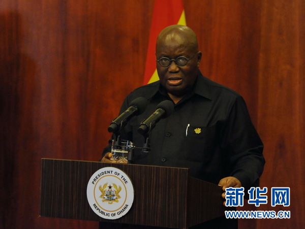 新華網(wǎng)阿克拉4月12日電(記者石松 趙姝婷)加納總統(tǒng)阿庫福-阿多10日在講話中強(qiáng)調(diào),中加兩國合作近年來不斷發(fā)展深化,為加納人民生活帶來切實(shí)利益。