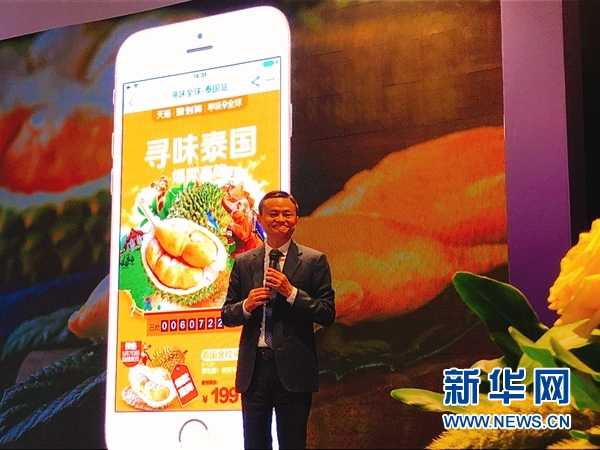 4月19日,阿里巴巴集團(tuán)董事局主席馬云與泰國政府簽訂備忘錄,在泰國建設(shè)大型智慧物流樞紐,讓榴蓮等農(nóng)產(chǎn)品的出口朝著72小時送達(dá)加速。新華網(wǎng)發(fā) 陳家寶攝
